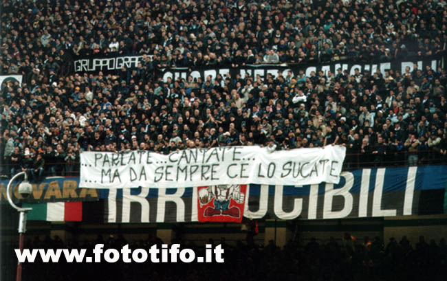 Anul urmator ne vom continua drumul, si, chiar daca unii dintre noi nu vor putea sa fie prezenti, vom face tot posibilul sa ramanem cei mai buni. Sperand ca legendarul INTER ne va oferi anul acesta un moment de bucurie, profitam de ocazie pentru a saluta toti suporterii nerazzurrilor care sustin in fiecare an aceasta echipa, la bine si la rau. Ii salutam si pe cei care sustin “Irriducibili”.